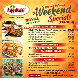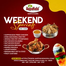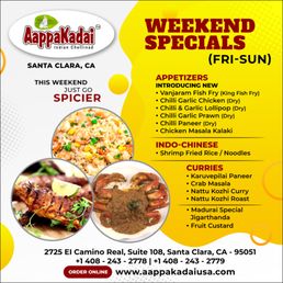 Welcome to AappaKadai, a gem in the heart of Santa Clara offering authentic Indian cuisine with a modern twist. This restaurant is a food lover's paradise, providing a plethora of options for both vegetarians and non-vegetarians. From traditional South Indian soups like Kozhi Soup to innovative dishes like AappaKadai Fried Chicken, every item on the menu is bursting with flavor and authenticity.